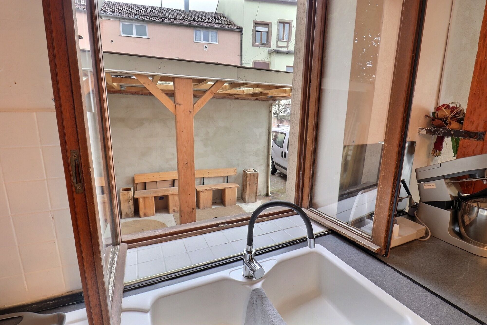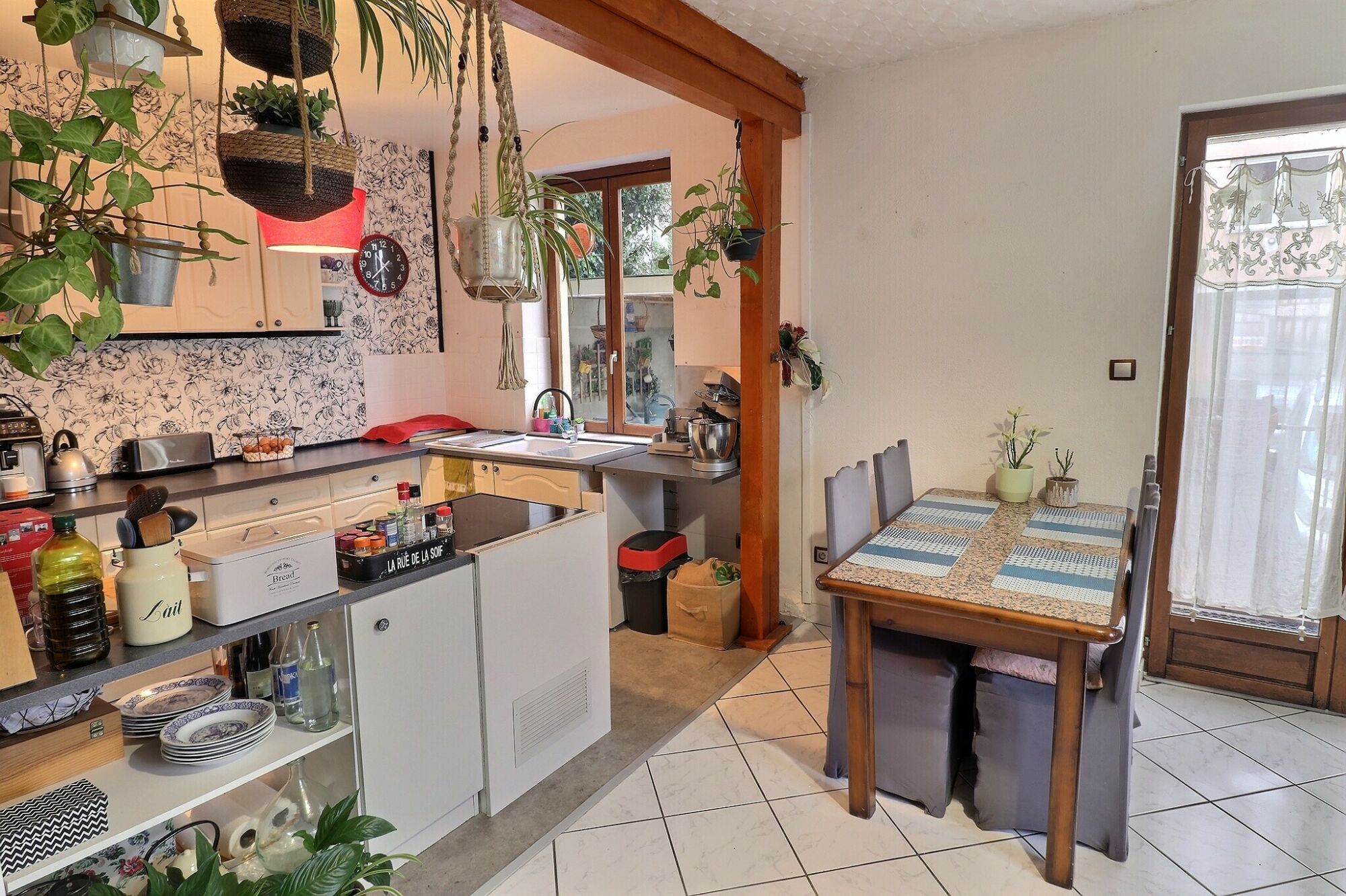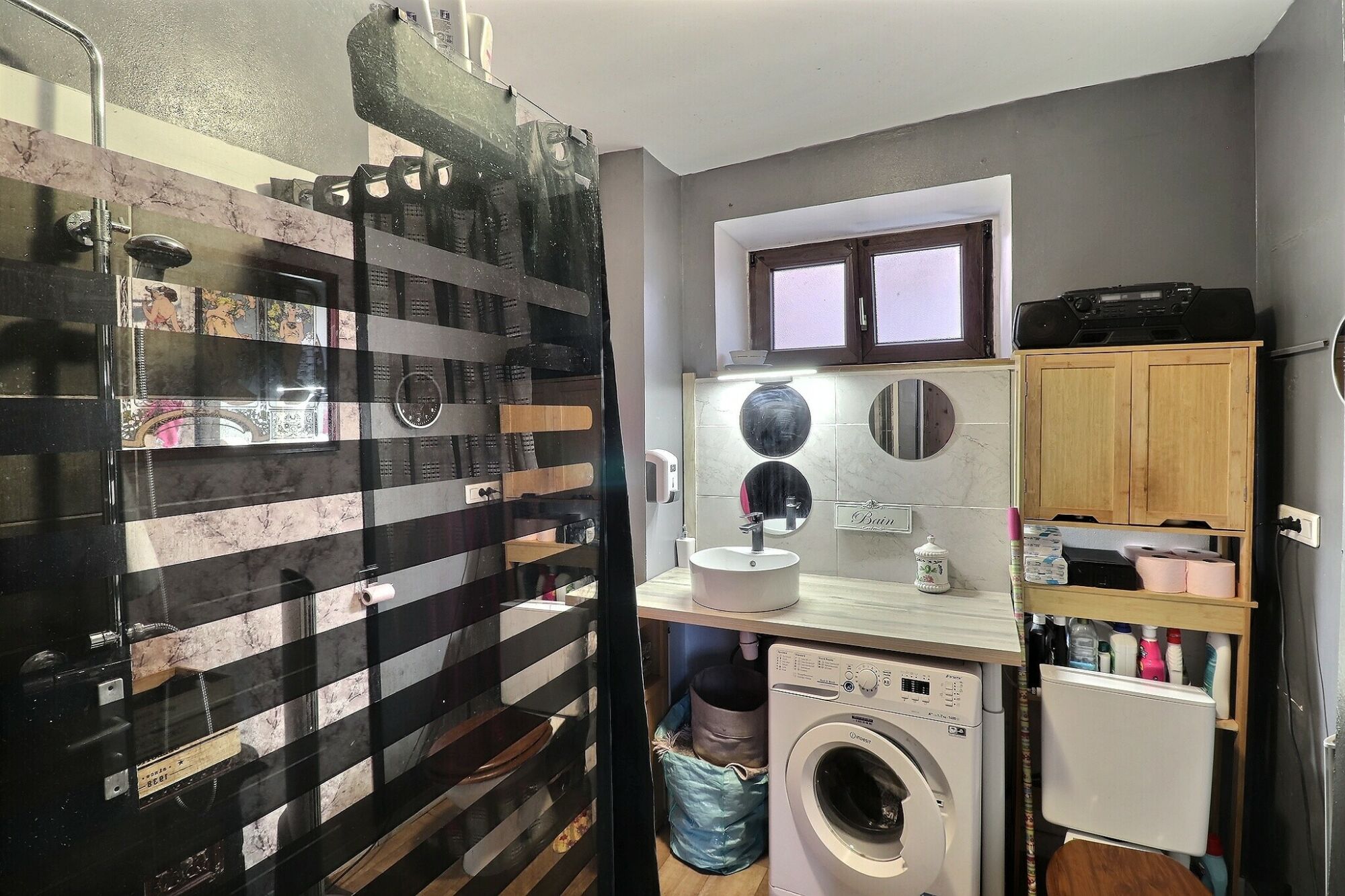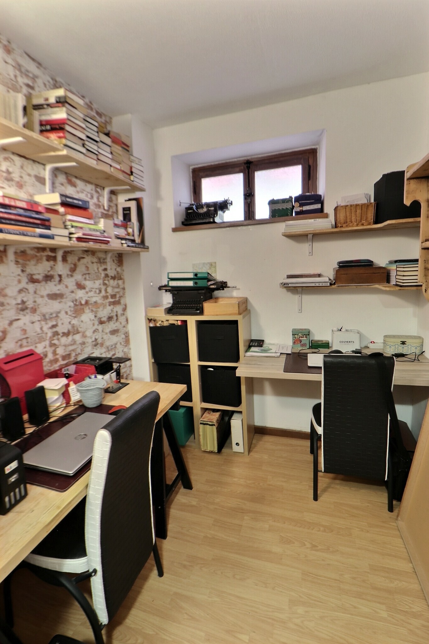 Au rez-de-chaussée un salon ouvert sur une cuisine avec accès direct sur l’espace extérieur, une salle d’eau avec fenêtre. Au premier étage, une pièce bureau de 4.73 m² avec fenêtre, une pièce avec deux fenêtres utilisé actuellement en espace salon, une pièce de servant actuellement d’espace nuit.