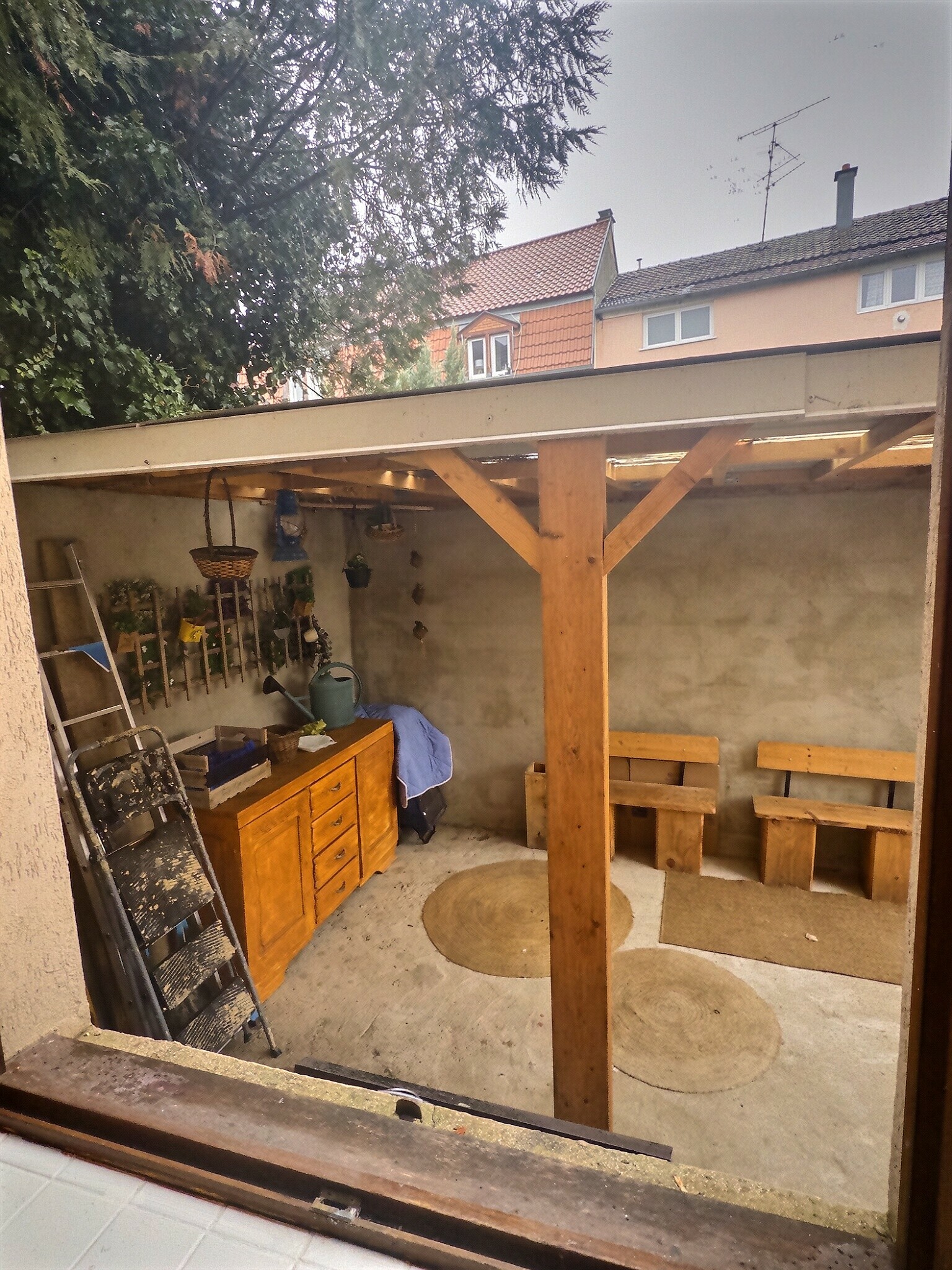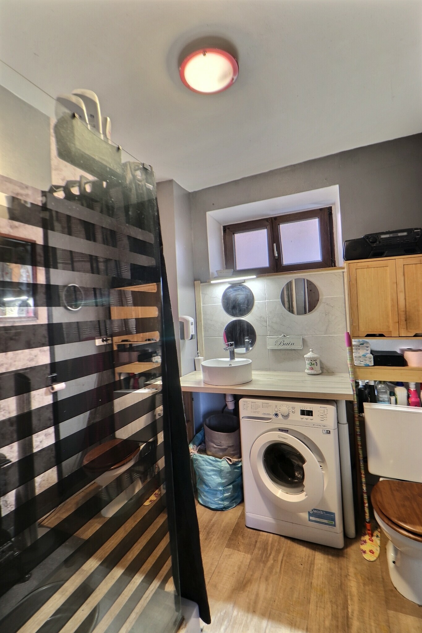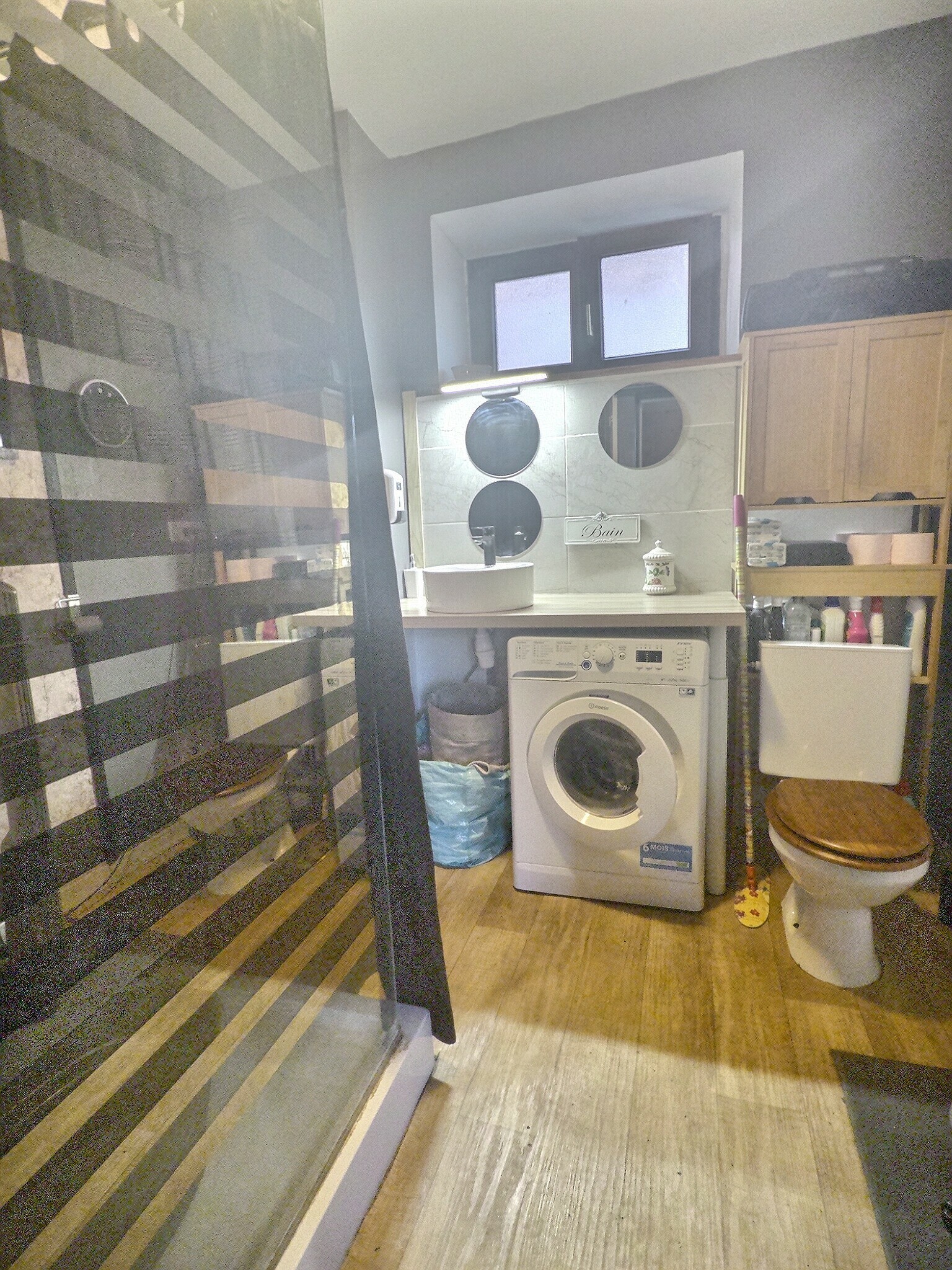 Le +: Fenêtres dans toutes les pièces, accès direct sur l’espace terrasse couverte, en retrait de la route mais proches des commerces et d’un arrêt de bus à pied, petite copropriété de 3 lots principaux, syndic bénévole, faibles charges/an.