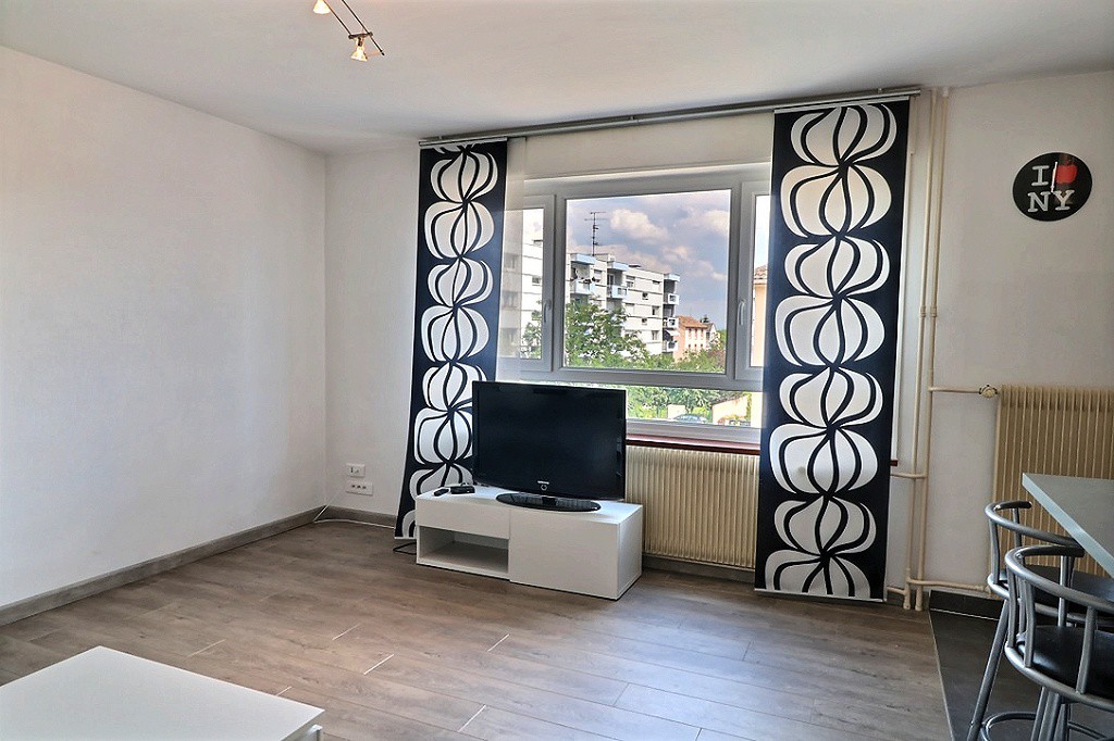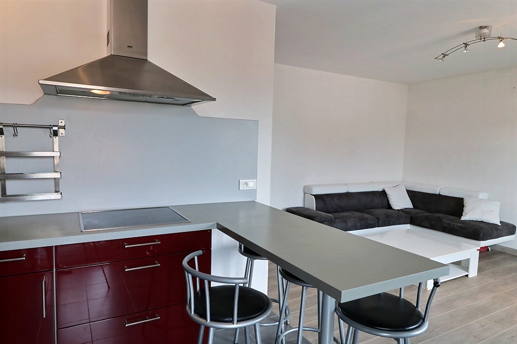 F2 de 48 m² offrant une entrée, un salon ouvert sur cuisine équipée avec un balcon, une chambre avec placards, une salle d’eau équipée, un WC, un petit cellier/buanderie.