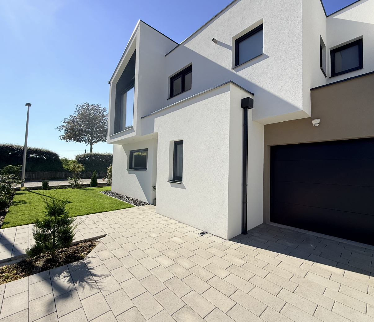 Climatisation à l’étage, chauffage au sol avec pompe à chaleur, places de parking devant la maison, terrain aménagé avec une partie terrasse et jardin.